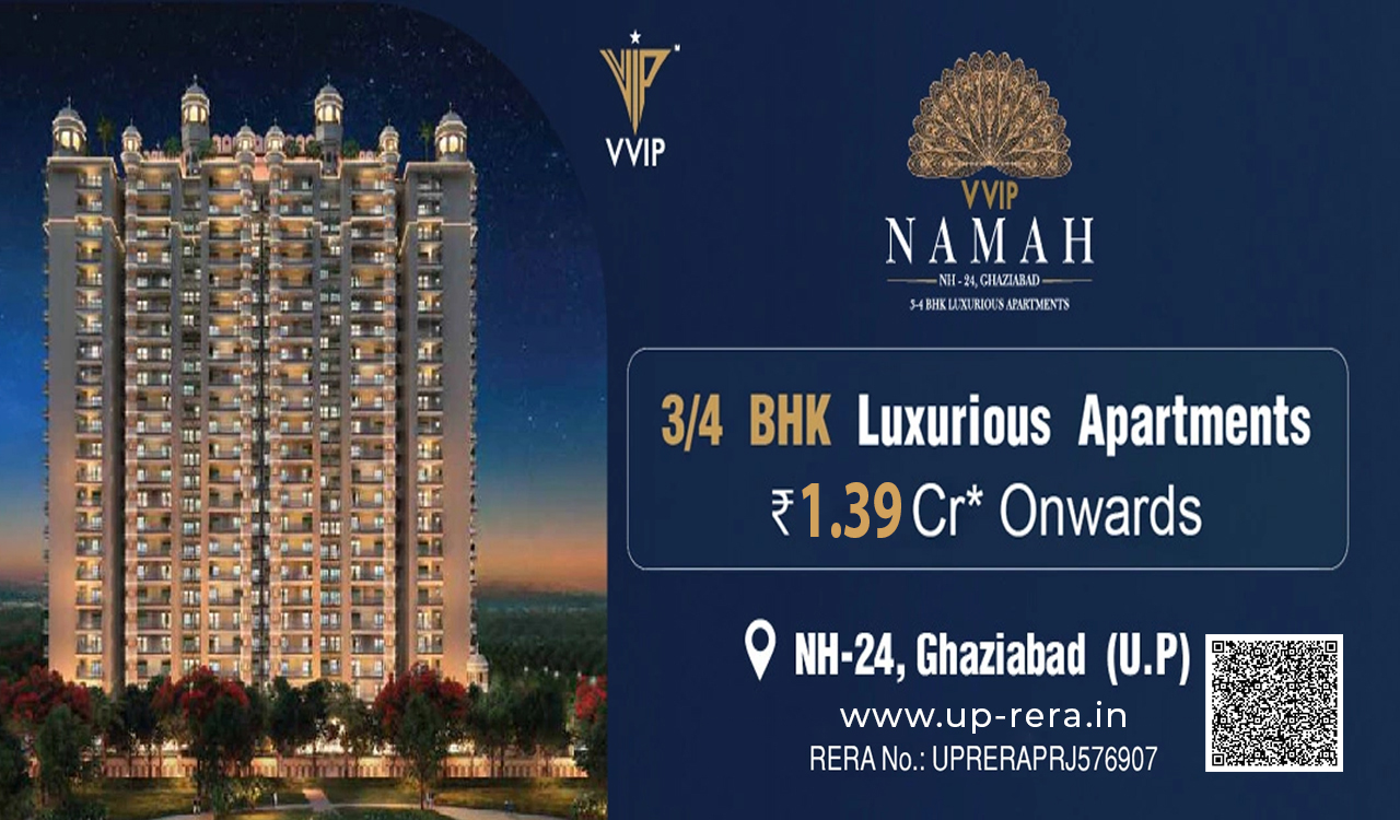 VVIP Group Ghaziabad Launched 3 & 4 BHK Luxurious Apartments in VVIP Namah NH 24 Ghaziabad. VVIP NH 24 is 5min from Ghaziabad RDC, 15min from Anand Vihar, 10min from Ghaziabad Railyway Startion & Sector 62 Noida. From the moment you enter, you're surrounded by an ambiance that exudes positive energy, ensuring every day starts on a rejuvenating note. VVIP Group Ghaziabad has been meticulously designed to foster a deep sense of well-being and connectivity to our roots, while not compromising on the urban essentials.