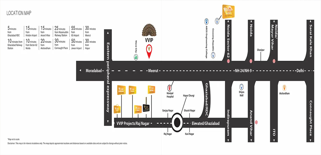 VVIP Group Ghaziabad strategically located at NH-24 Ghaziabad, this residential property in Ghaziabad is seamlessly connected to all of Ghaziabad's hotspots and other Delhi-NCR parts. VVIP NH 24 is 5min from Ghaziabad RDC, 15min from Anand Vihar, 10min from Ghaziabad Railyway Startion & Sector 62 Noida. From the moment you enter, you're surrounded by an ambiance that exudes positive energy, ensuring every day starts on a rejuvenating note.